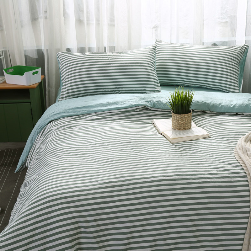 月夜猫日式简约条纹泡泡纱四件套shunai8888