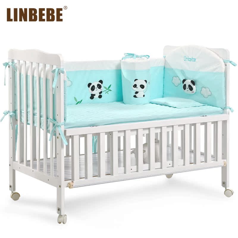 霖贝儿婴儿床上用品七件套熊猫宝贝床品系列