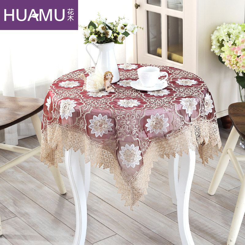 花木绣花圆桌布