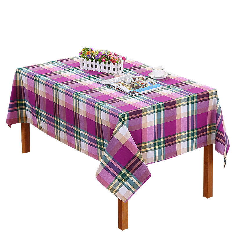 全棉加厚桌布-紫色格子