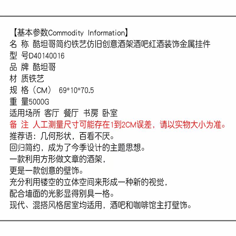 酷坦哥现代铁艺创意壁挂式红酒架D40140016