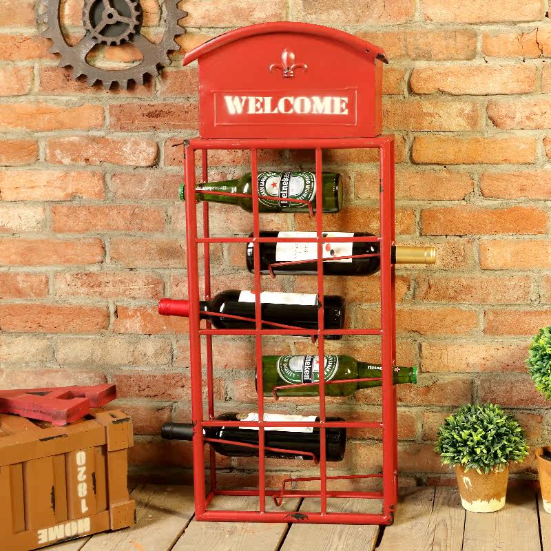 法慕小城复古铁艺酒架红色电话亭酒架