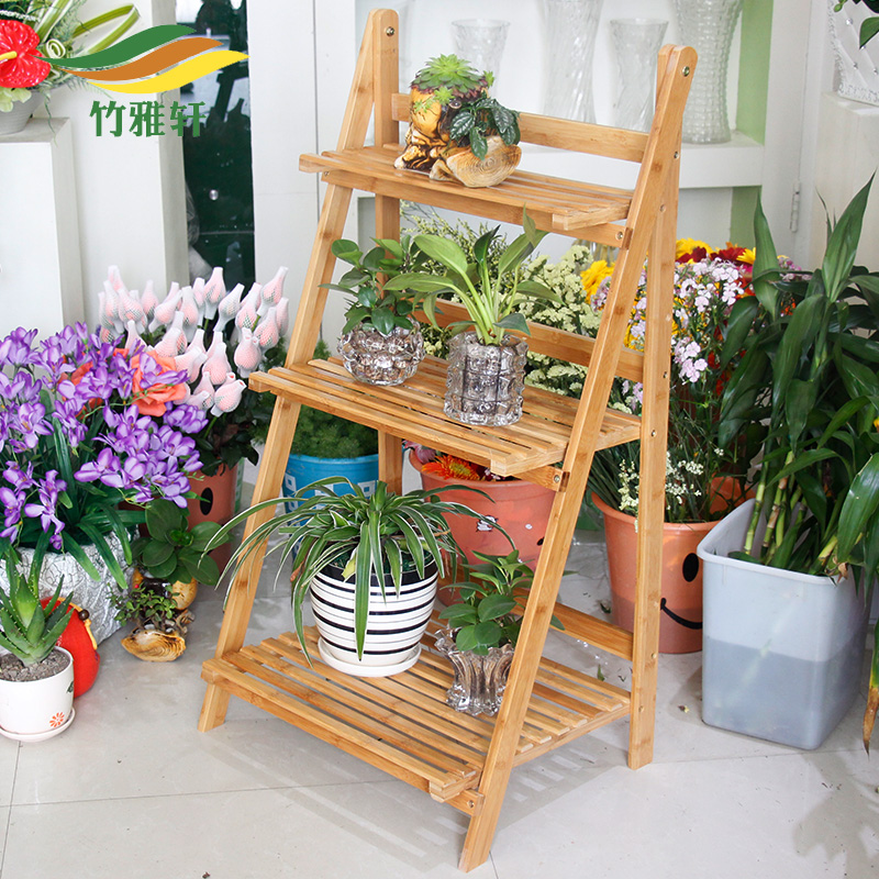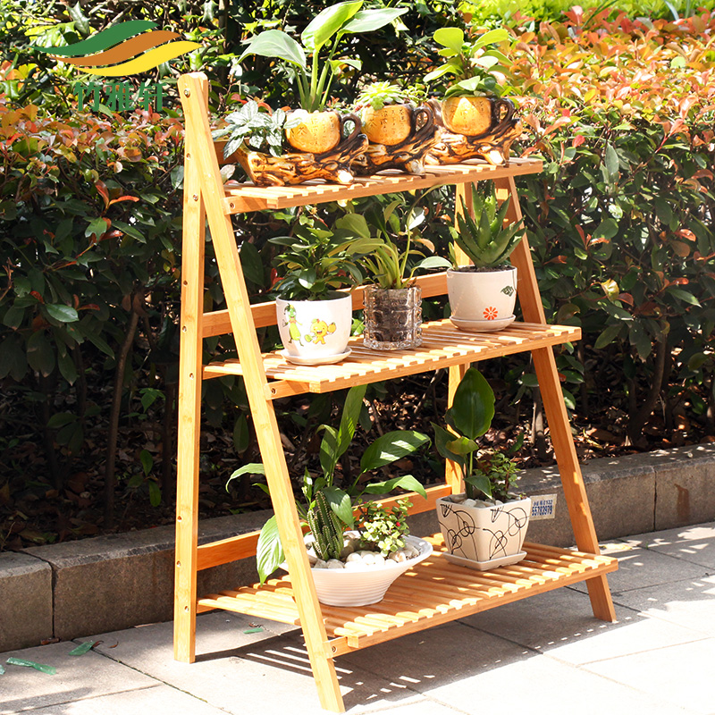 竹雅轩实木楠竹落地多层花架ZYX-HJ