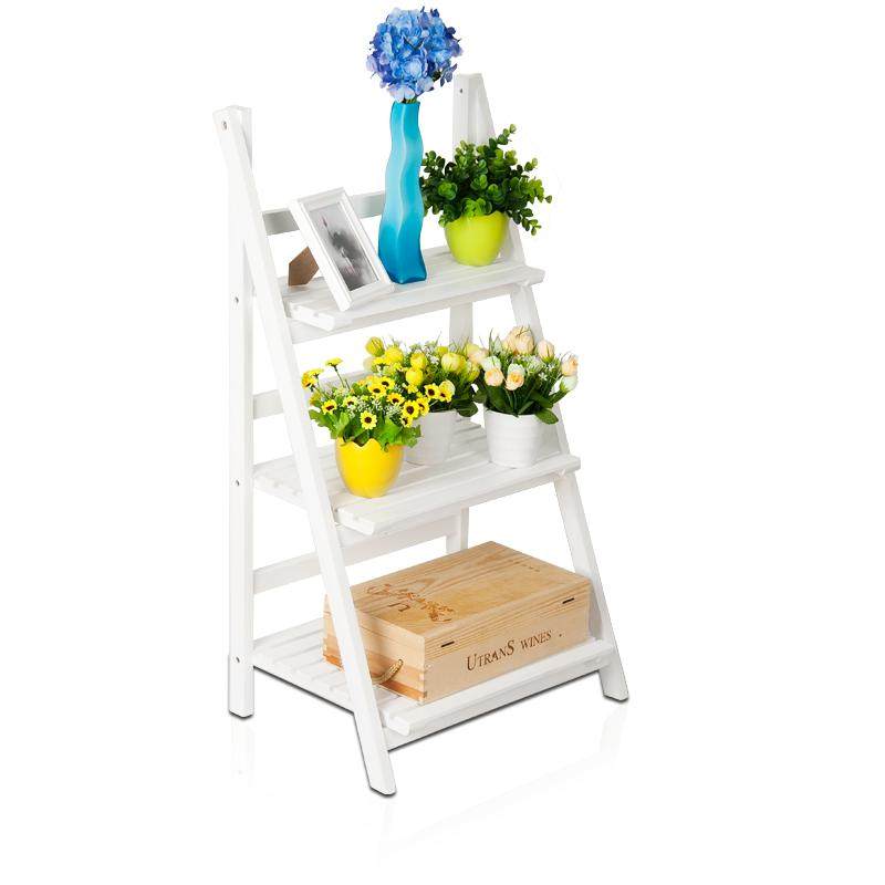 慧乐家三层实木阶梯松木多层折叠架FNCP-33037