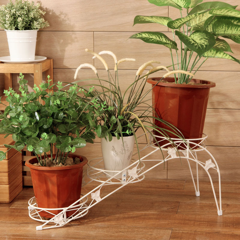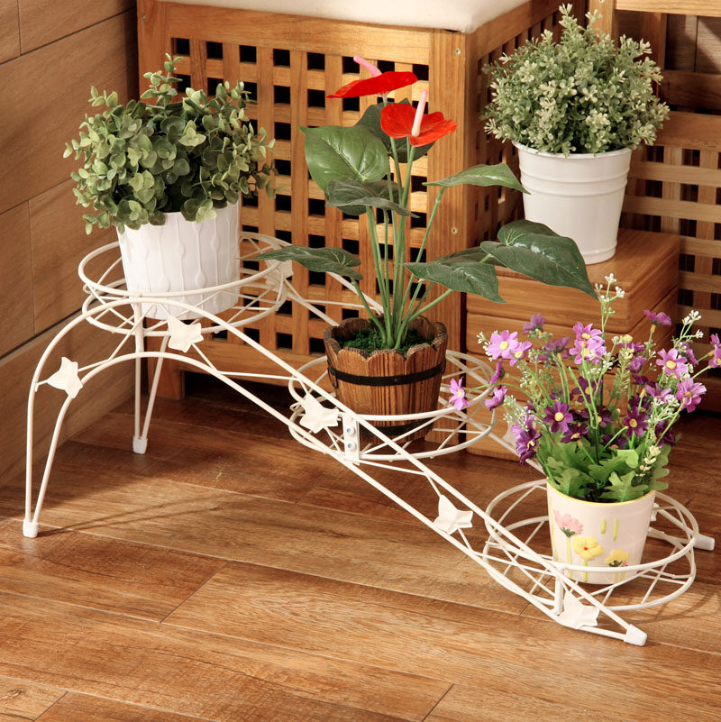 欧润哲梯形矮身白色三格铁艺花盆架子109829