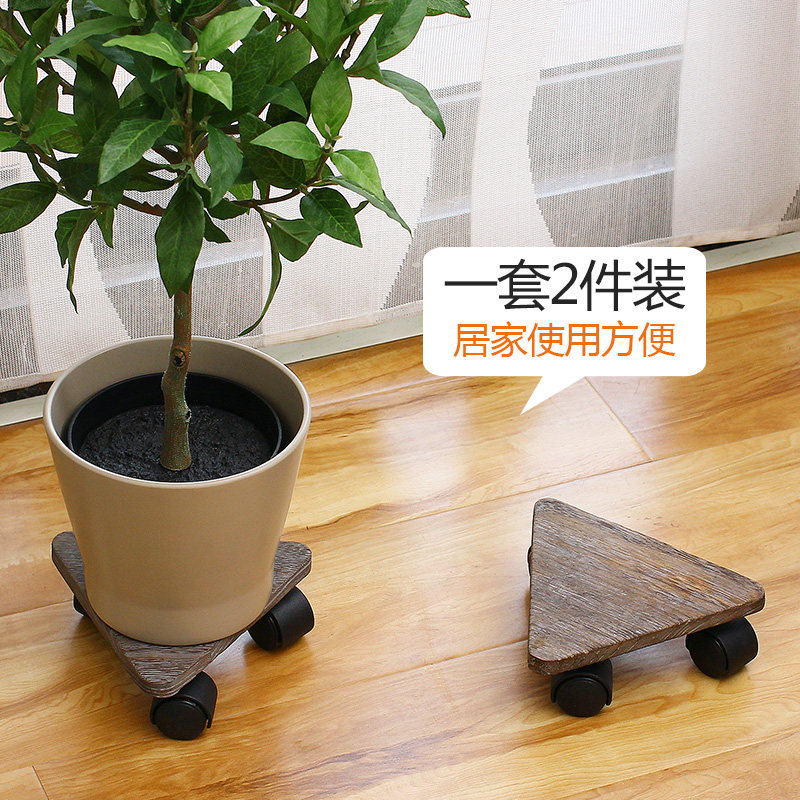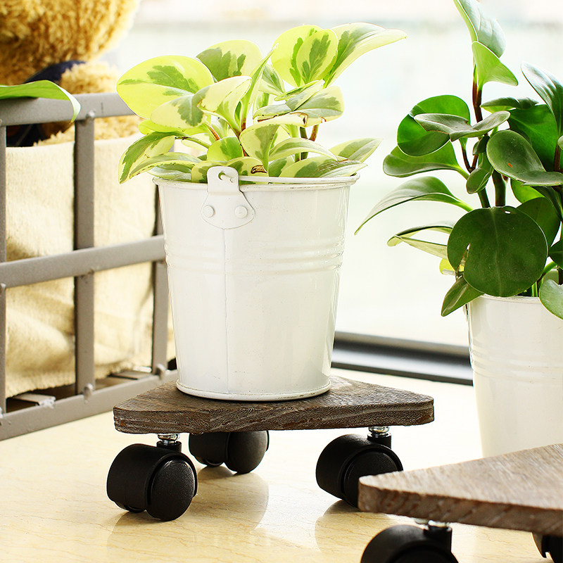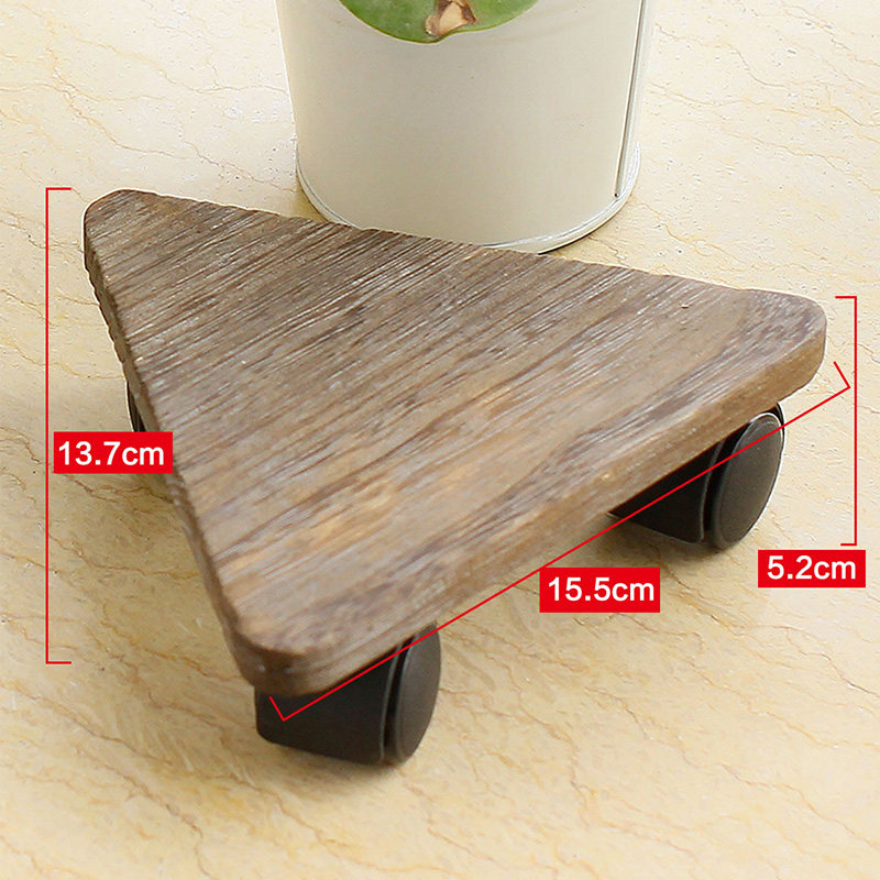 欧润哲可移三角形日式桐木带轮花台1套2只109863