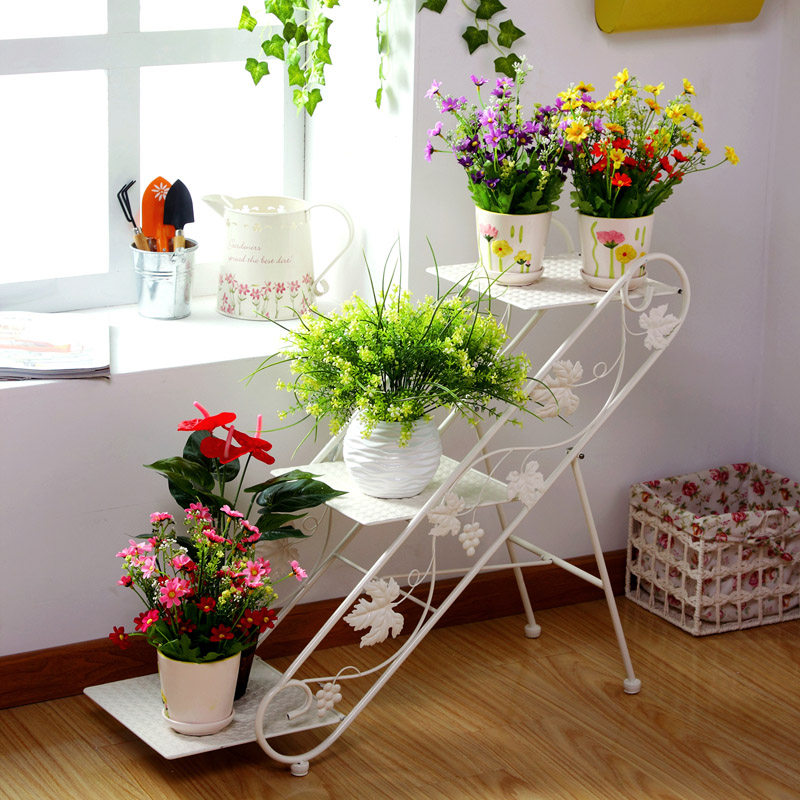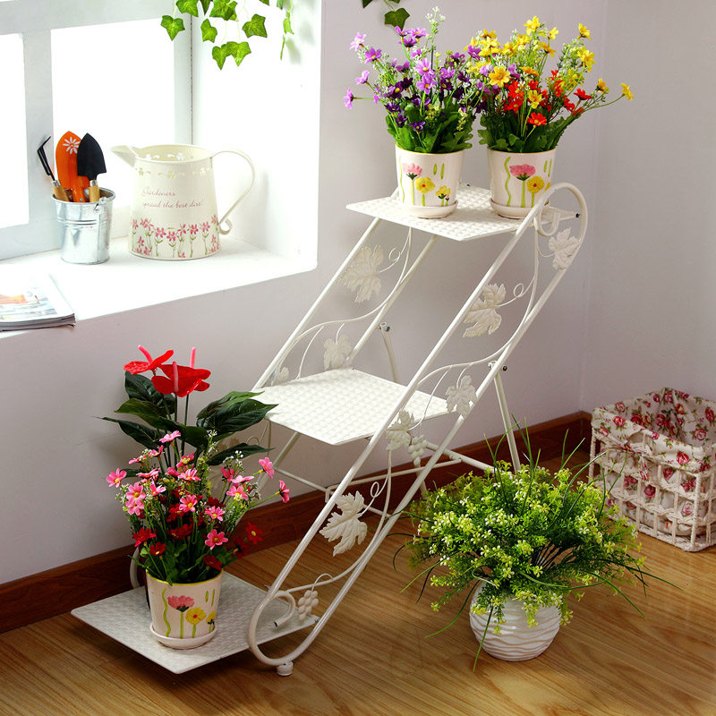 欧润哲铁艺落地式多层阶梯花盆架子109810