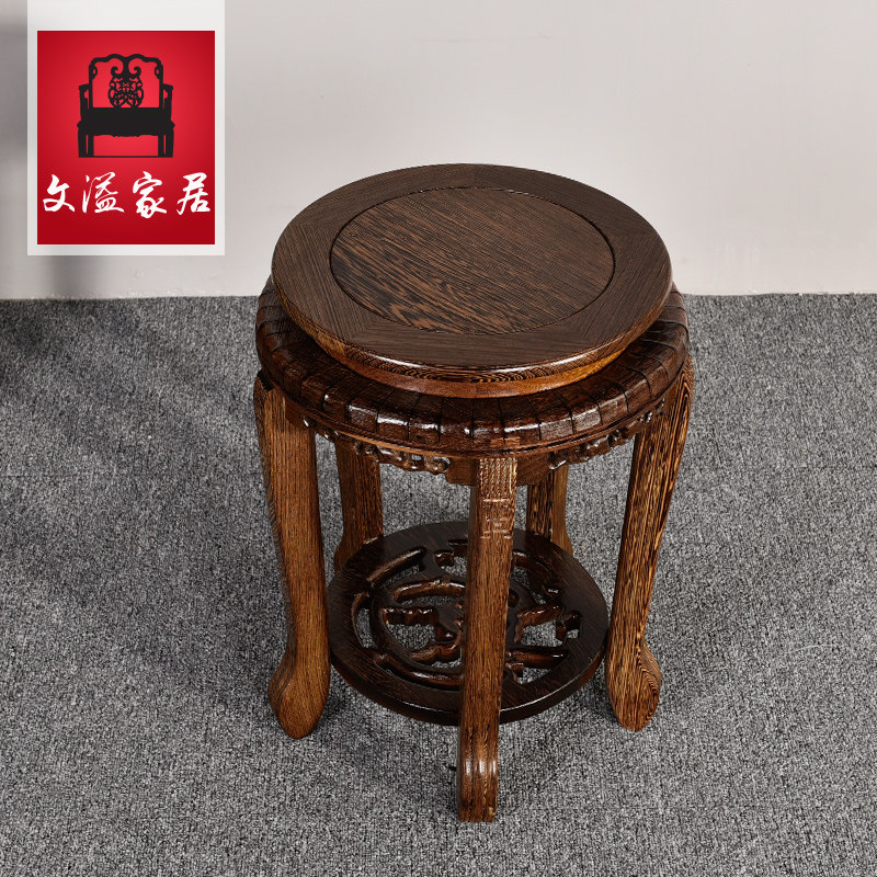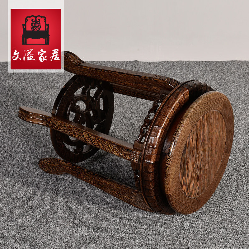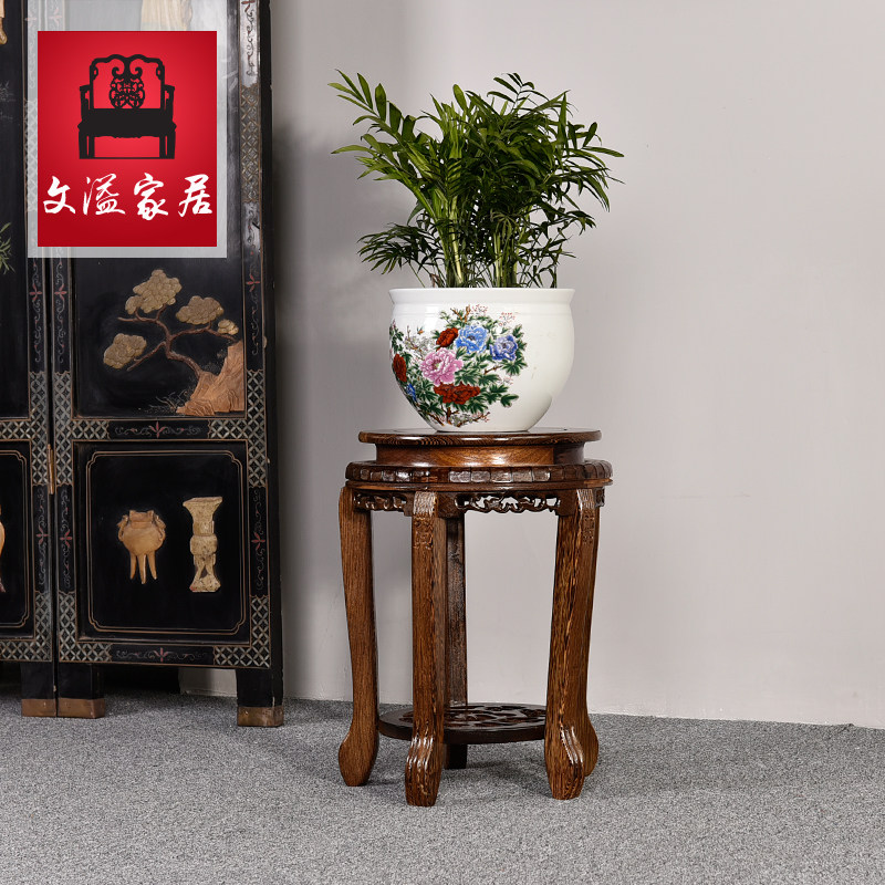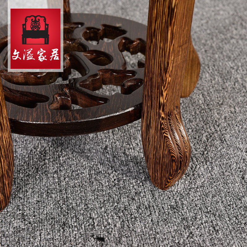 文溢红木鸡翅木圆形小花架