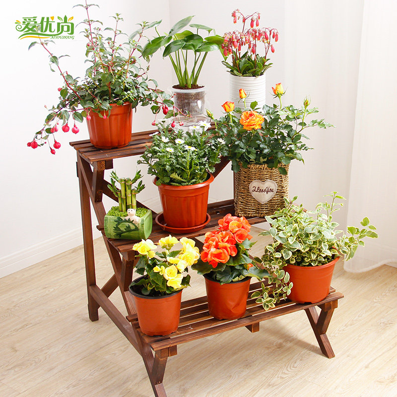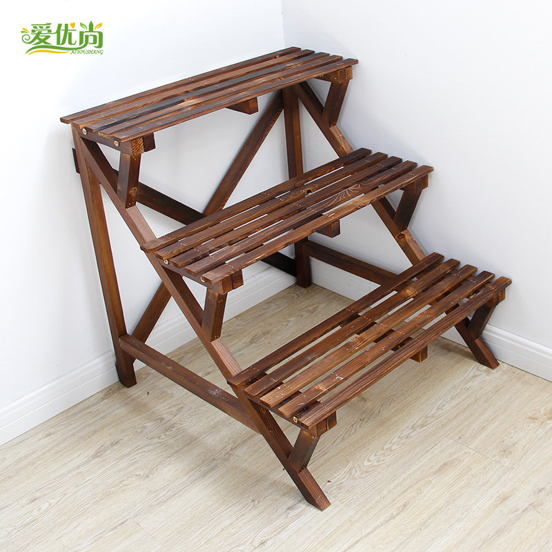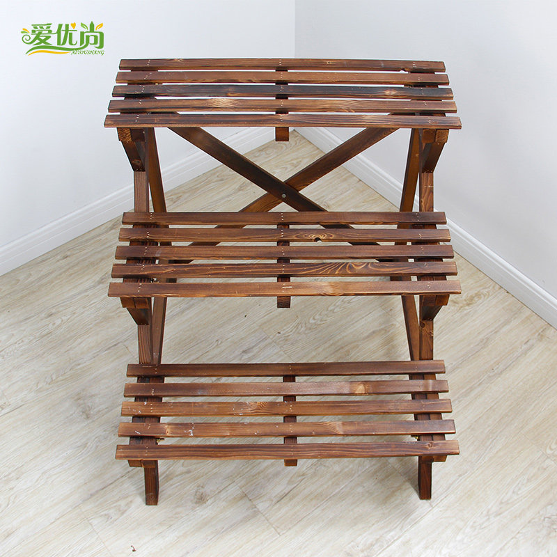 爱优尚碳烤悬挂实木梯形多层花架