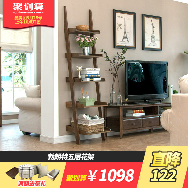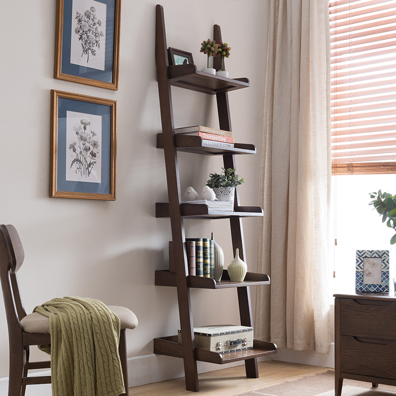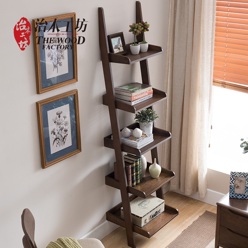 治木工坊纯实木黑胡桃色美式乡村书架SJ05