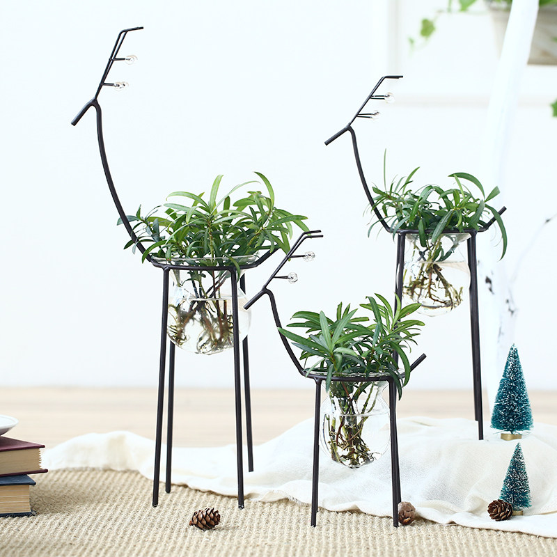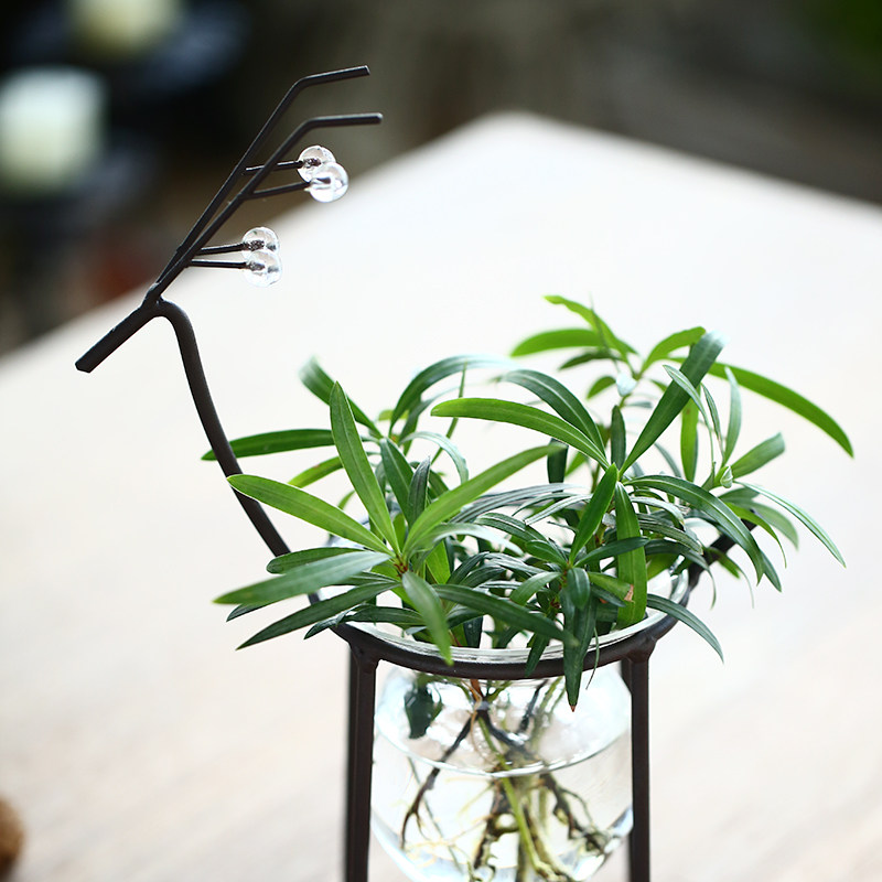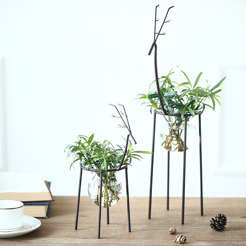 居饰工坊欧式创意铁艺花瓶玻璃落地花架250175
