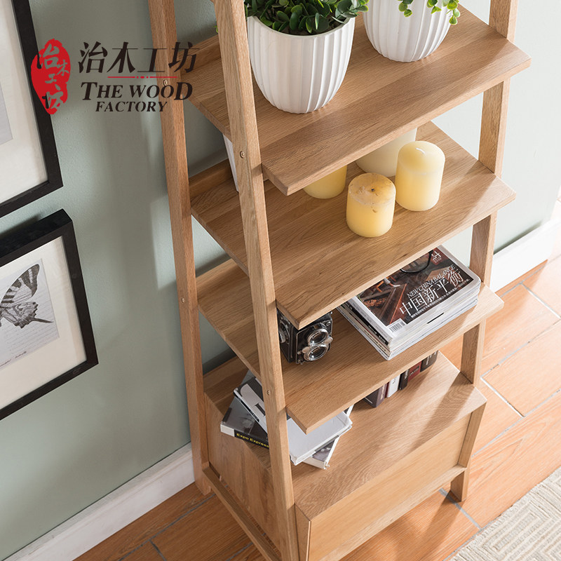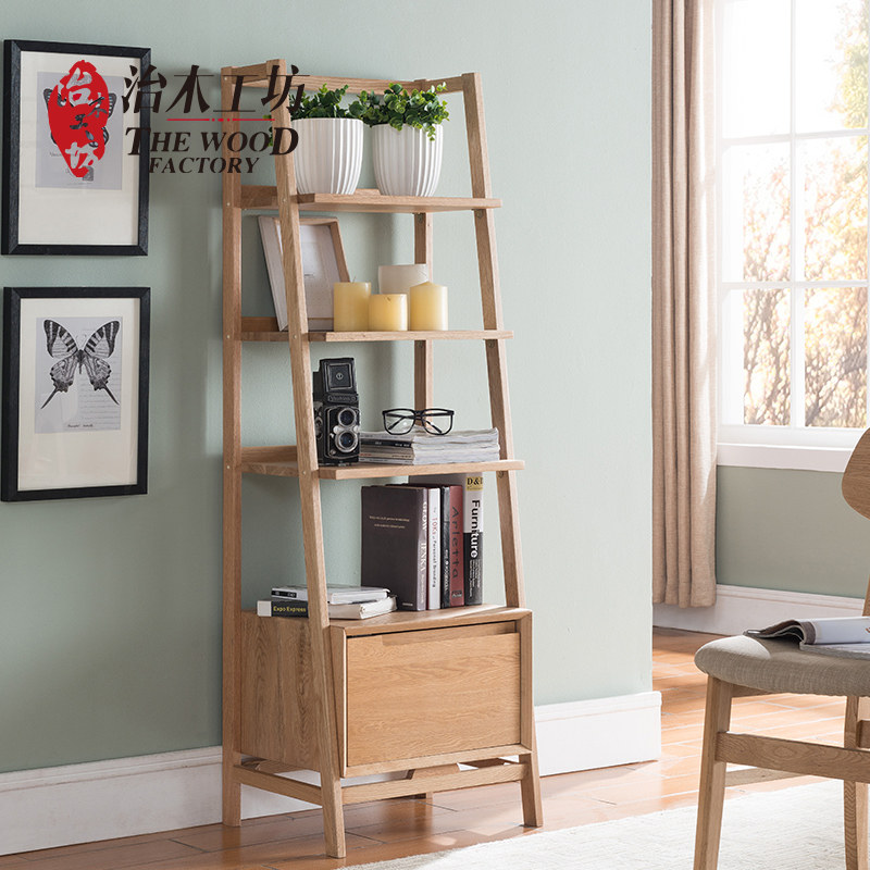 治木工坊北欧日式纯实木胡桃色斜书架FSZWJ-01