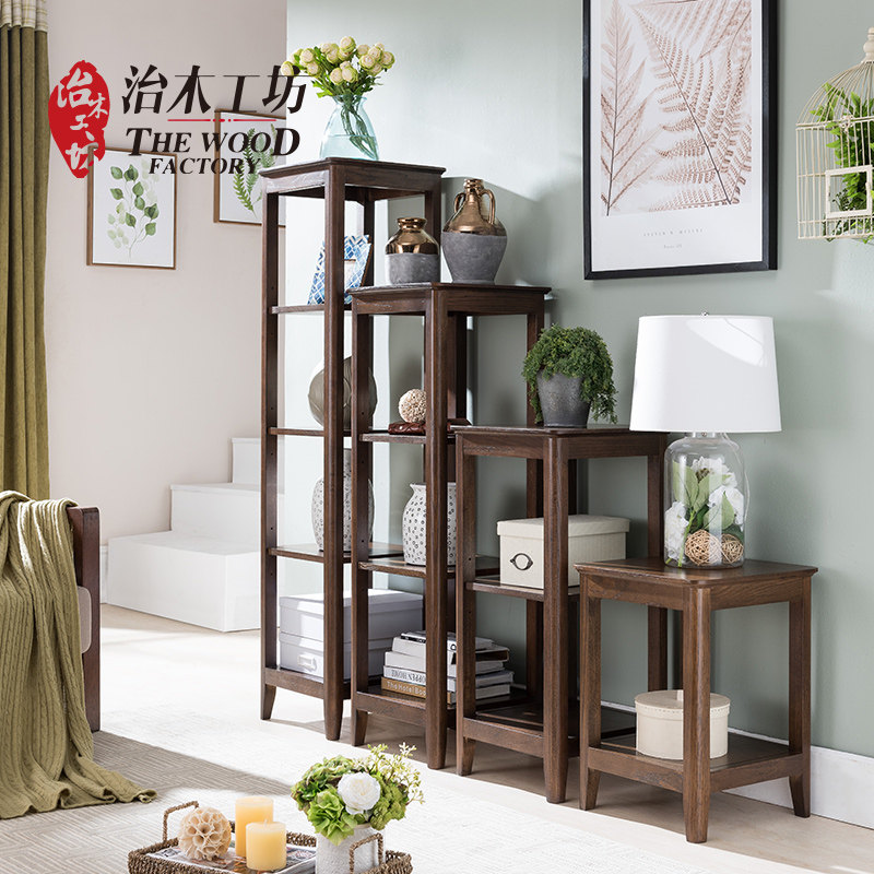 治木工坊纯实木红橡木胡桃色置物架0104110703