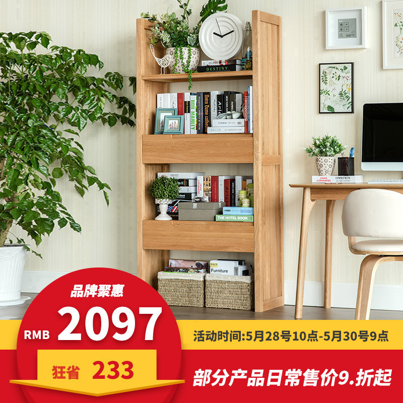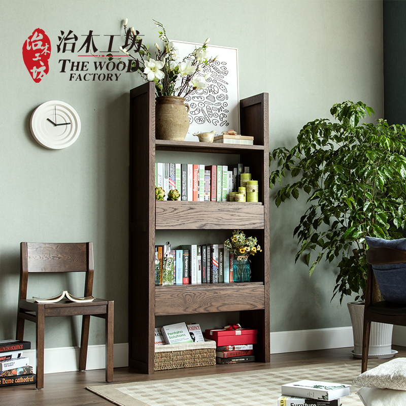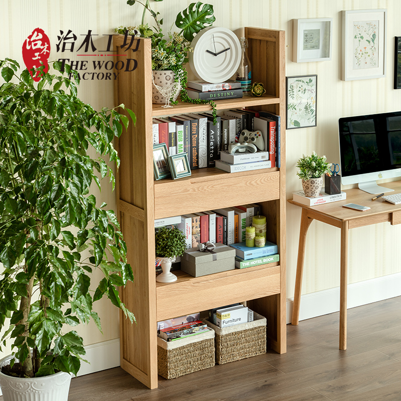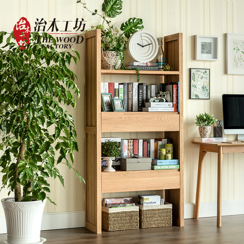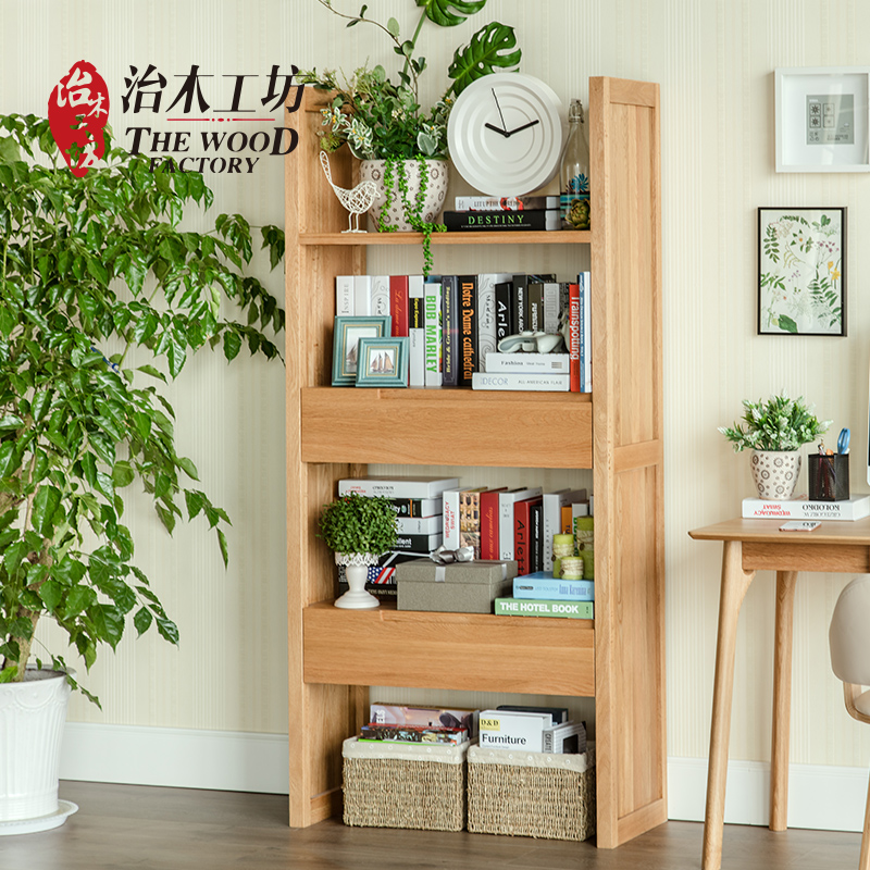 治木工坊纯实木北欧简约白橡木置物架FSSJ-02