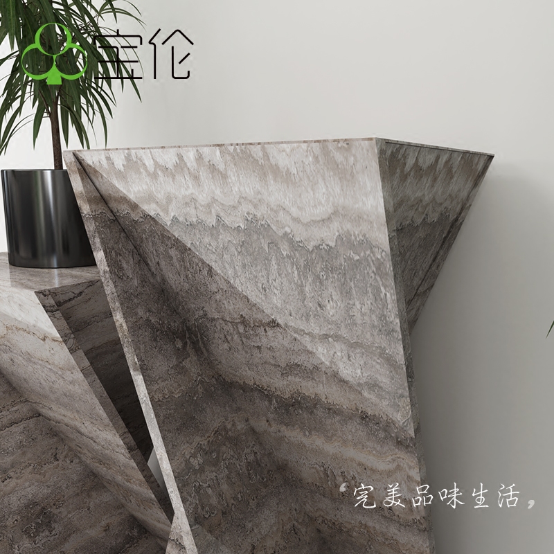 宝伦大理石白灰洞石雕花欧式实木仿古花架S111H