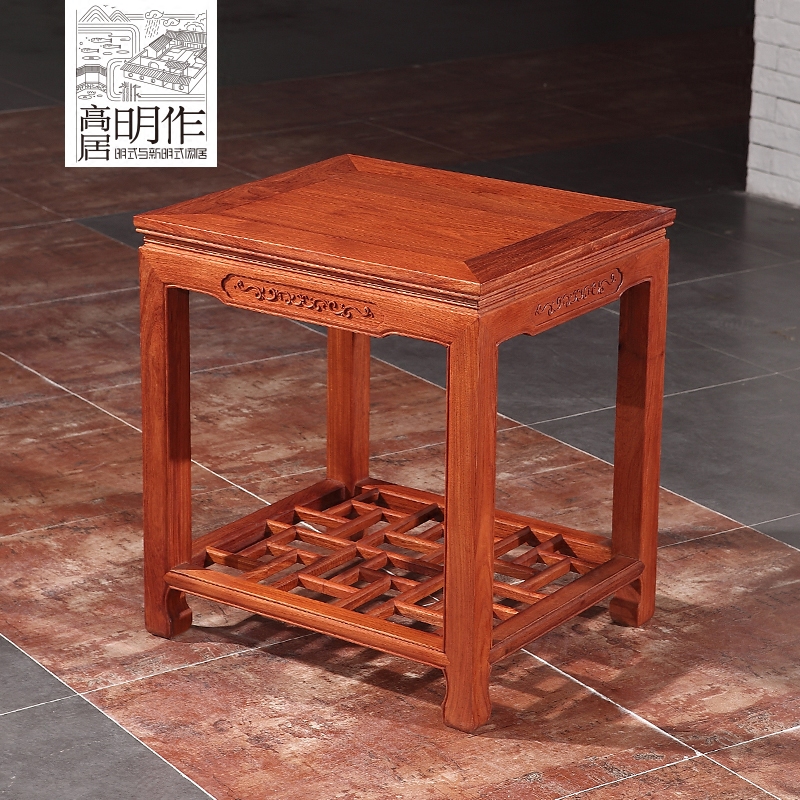 高居明作缅甸花梨木中式仿古实木花架