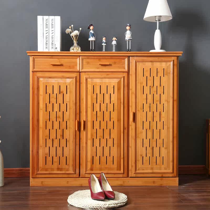 知吾竹实木鞋架加厚酒红色鞋柜