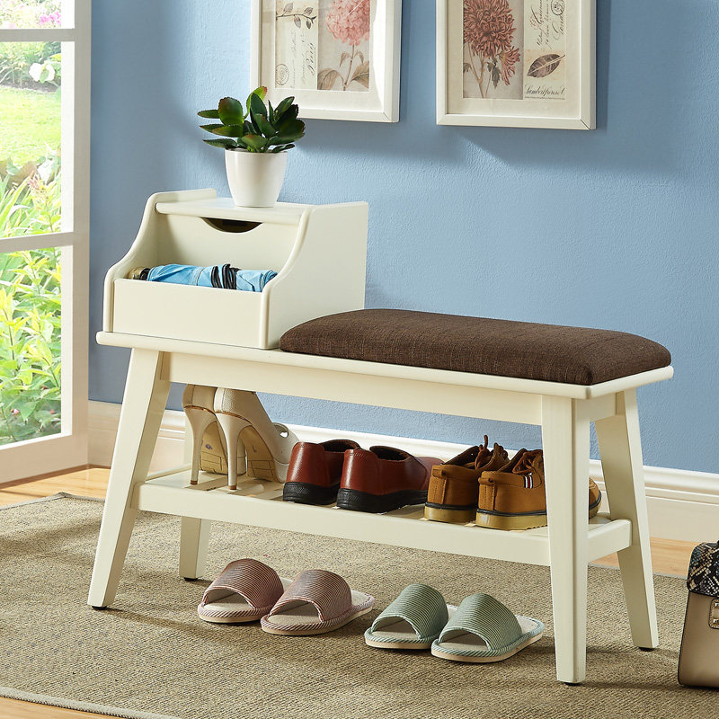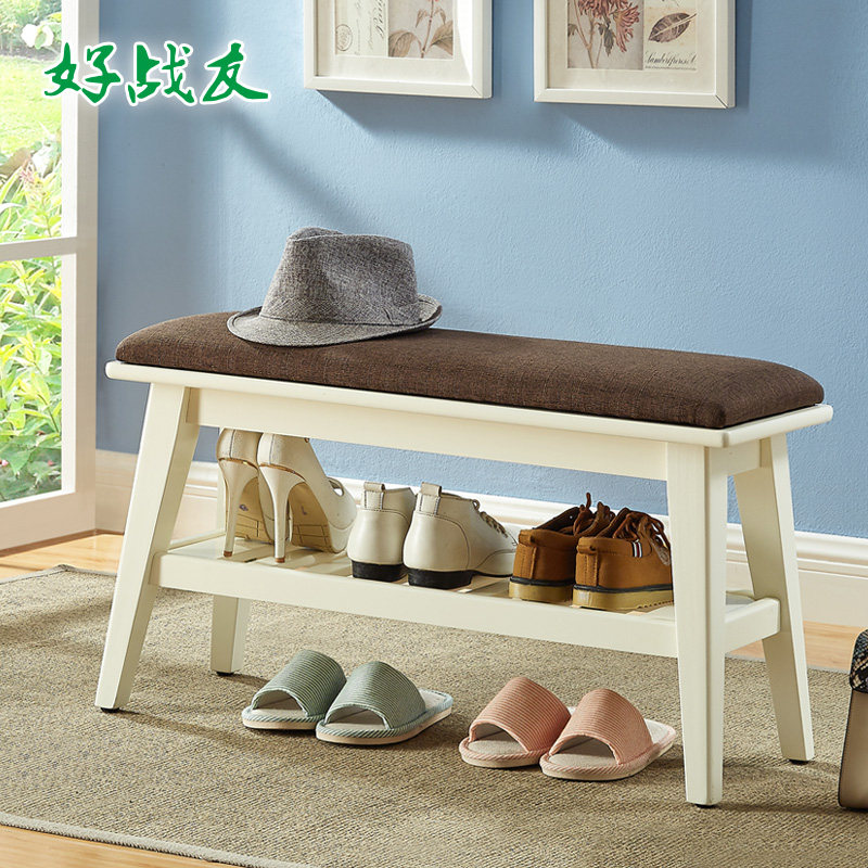 好战友储物实木白色布艺沙发凳架HZY-HXD-0008
