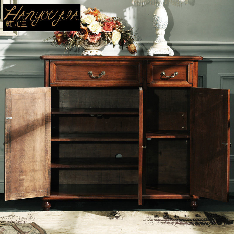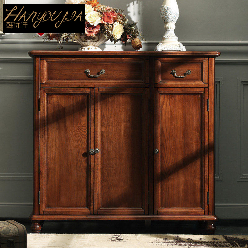 韩优佳美式三门复古实木鞋架
