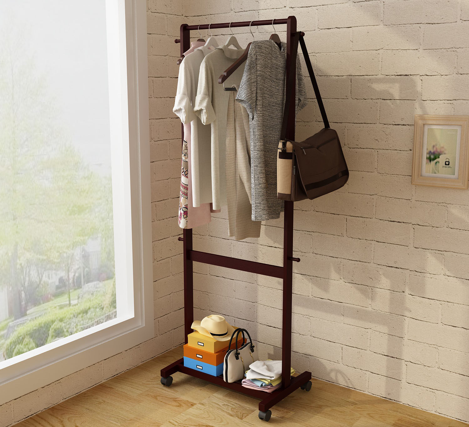 云云佳美实木落地简约现代衣服架YJ001