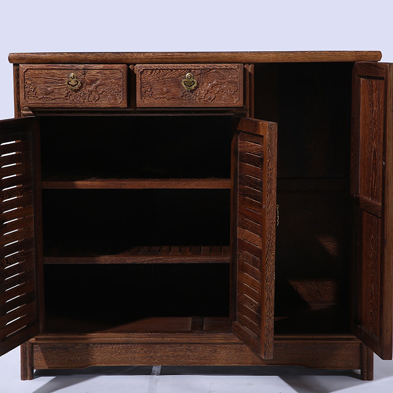 贡艺名居红木中式雕花鞋架GY00325