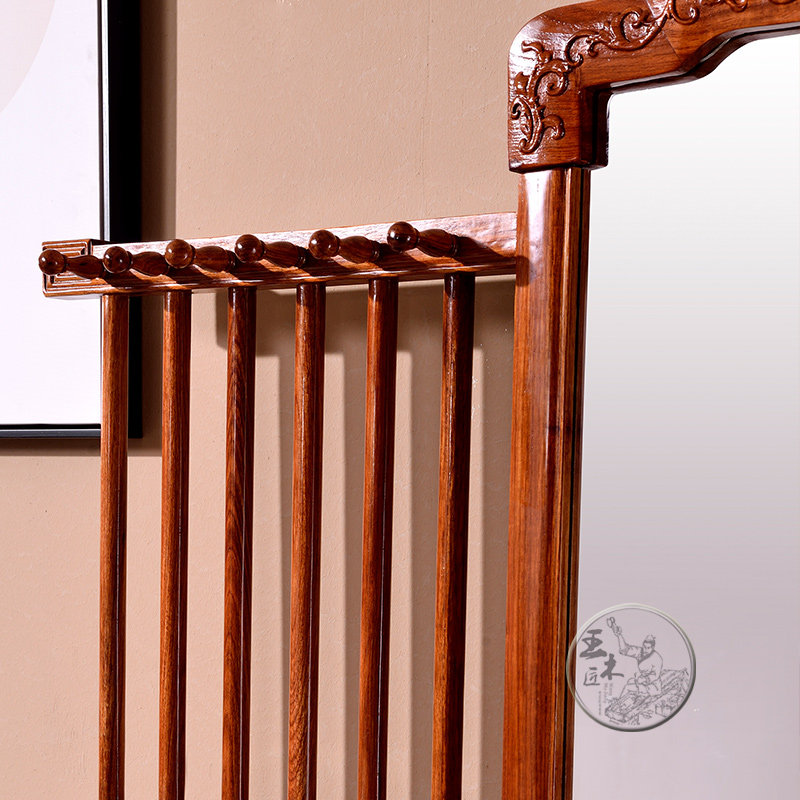 王木匠花梨木带穿衣镜国色天香衣帽架