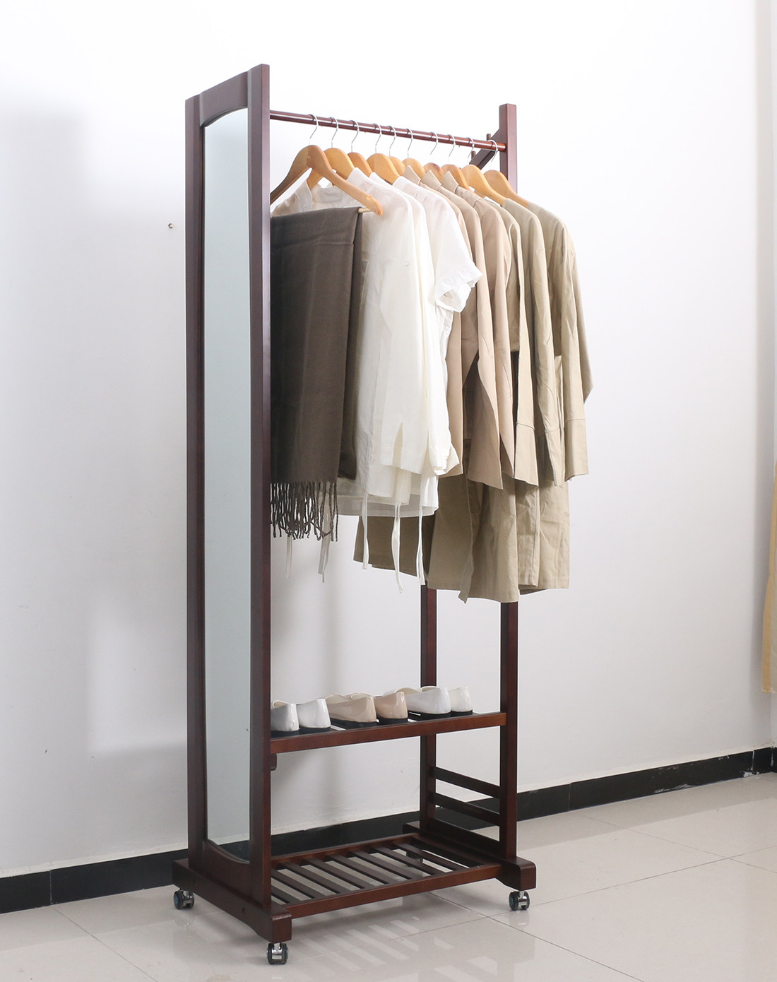 家逸落地木质带镜欧式挂衣架RF-LY025