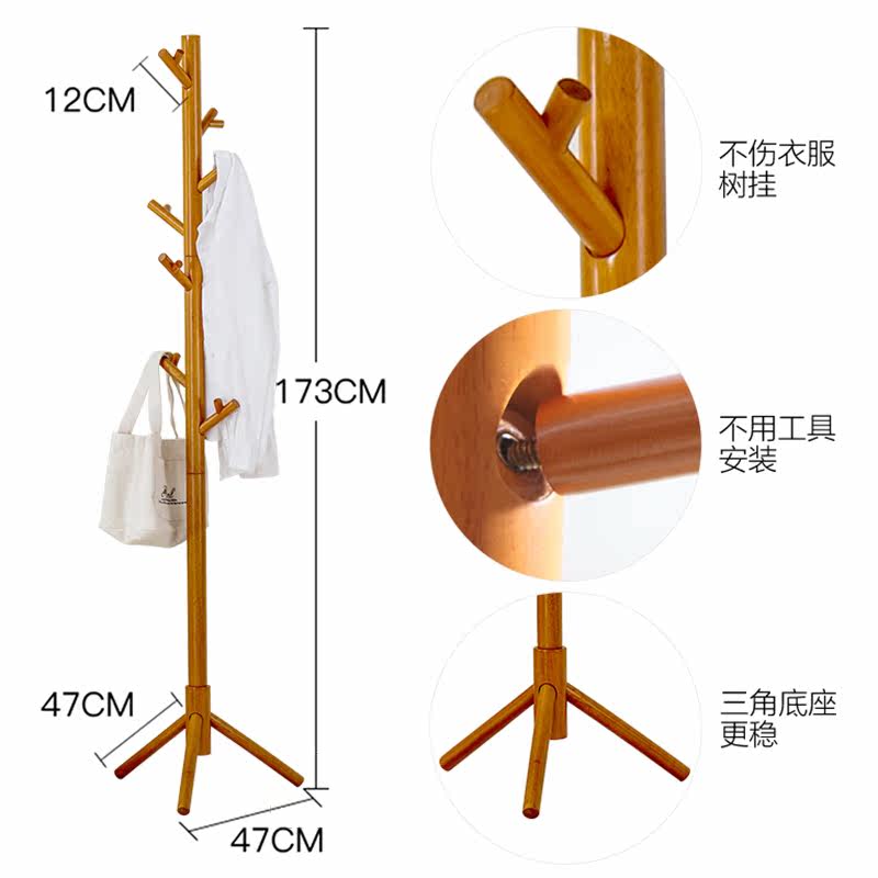 溢彩年华木质落地橡胶木挂衣架DKC5575