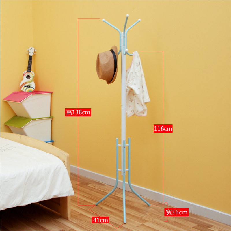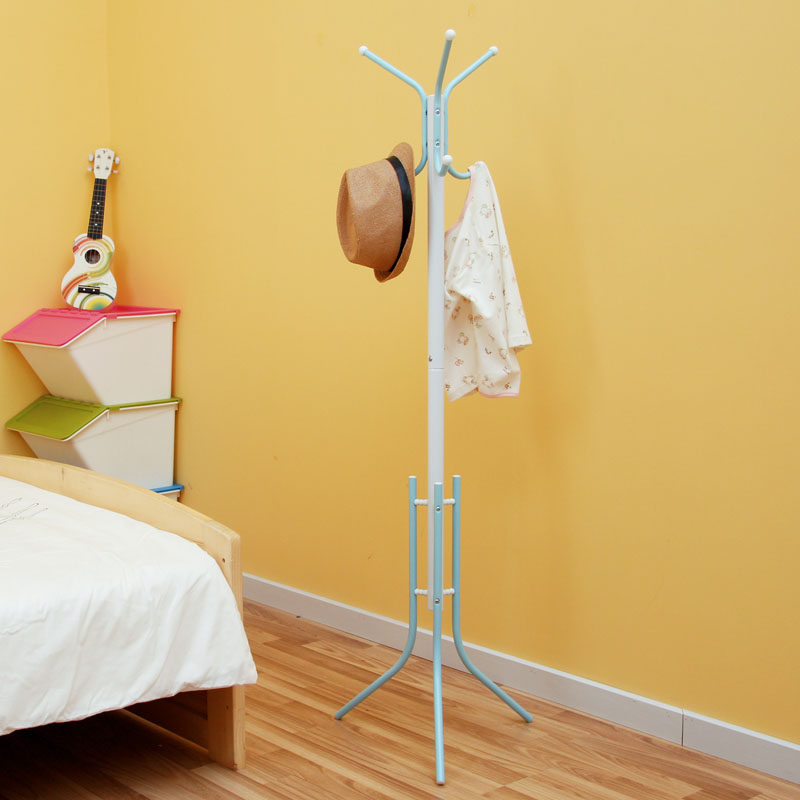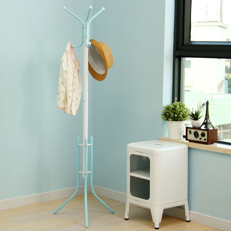欧润哲三脚粉蓝色铁艺落地挂衣架106674