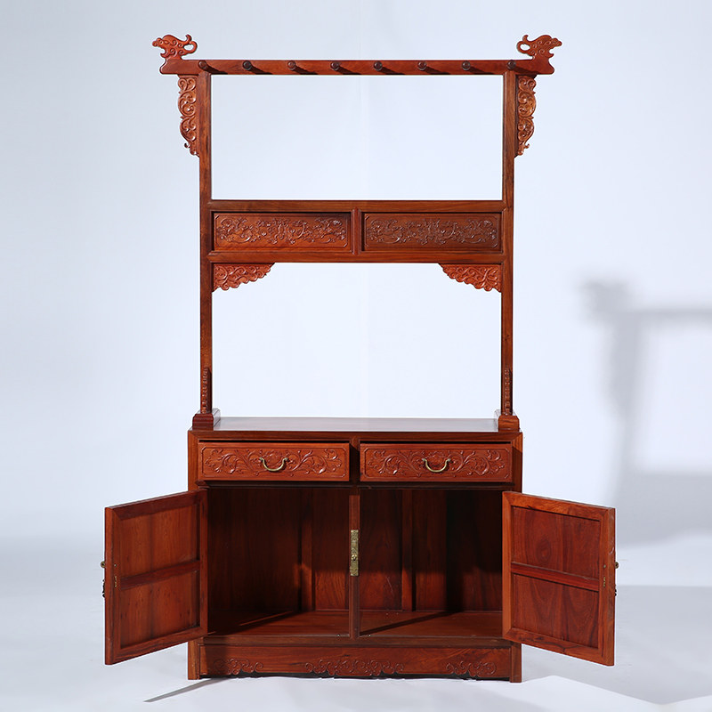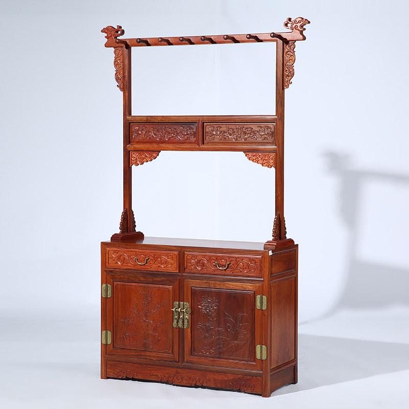 贡艺名居红木全缅甸花梨木中式落地挂衣架GY-RY-68