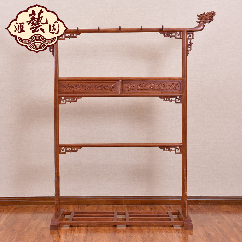 汇艺园红木缅甸花梨木中式仿古龙头衣架Z140721