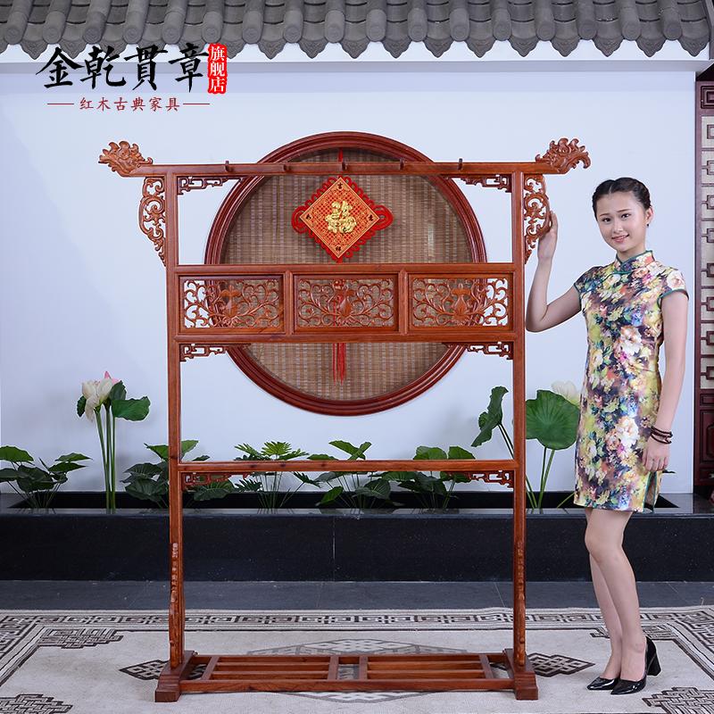金乾贯章红木缅甸花梨木雕花衣帽架HLYXG004