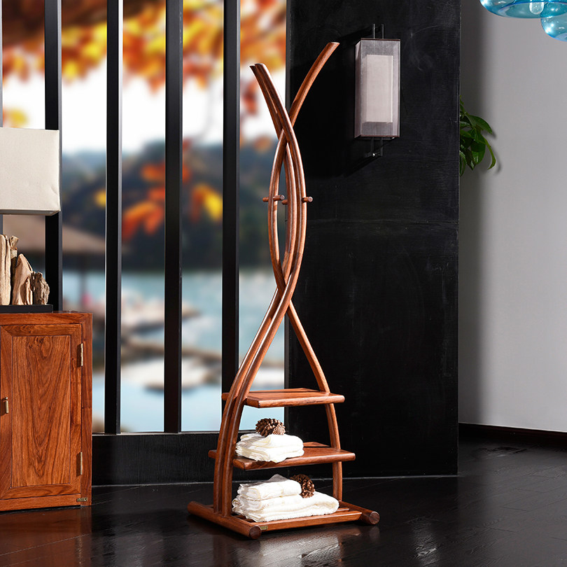 唯克美家新中式红木紫檀实木弧形挂衣架子FGXY8863