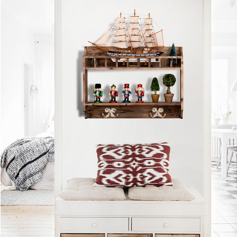 居饰工坊欧式复古实木衣帽挂钩壁挂 261746