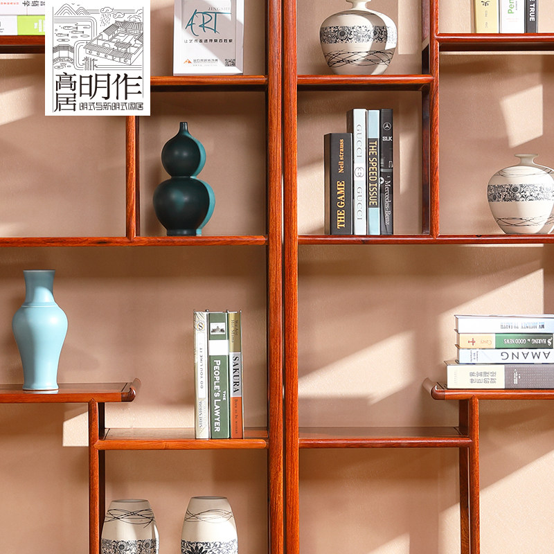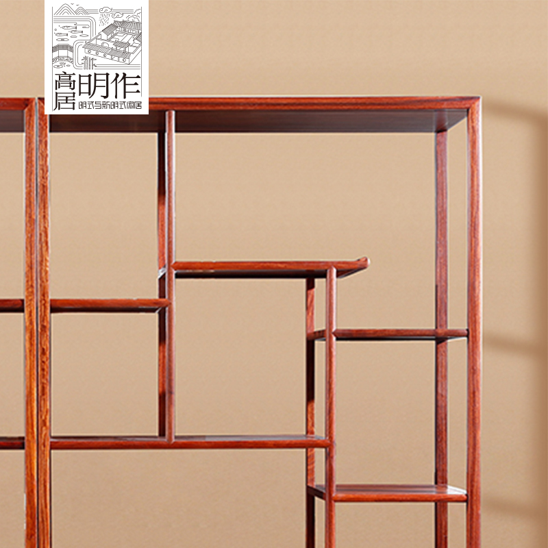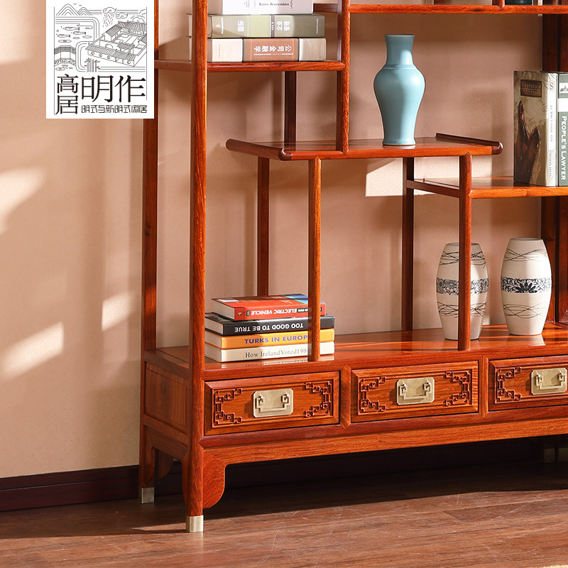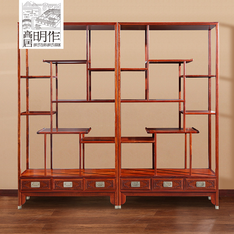 高居明作红木缅甸花梨木中式博古架