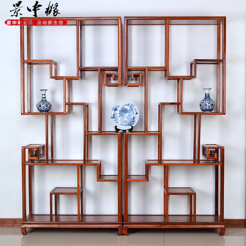 景中橼红木鸡翅木中式博古架D190