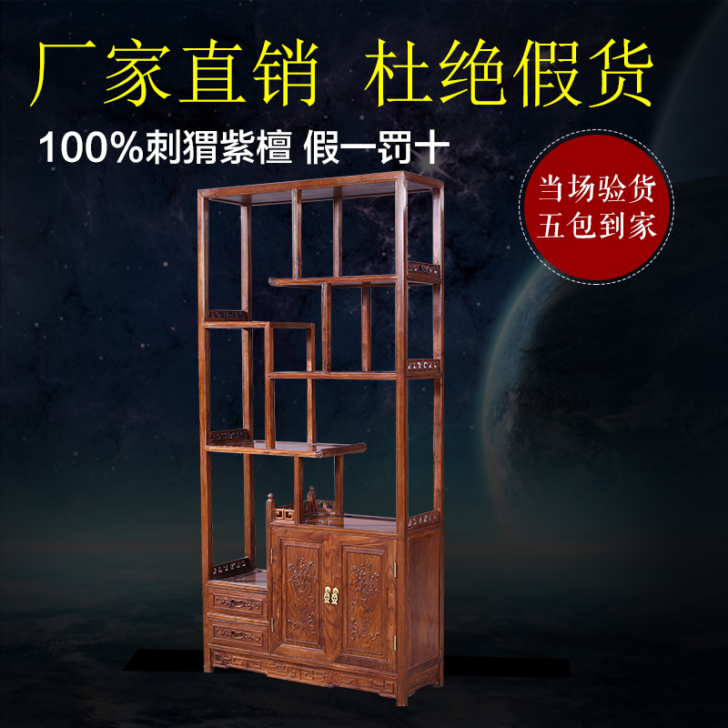 伟荣木雕红木全刺猬紫檀中式博古架B01