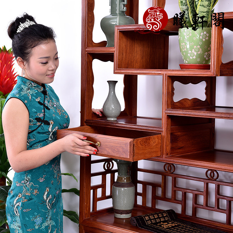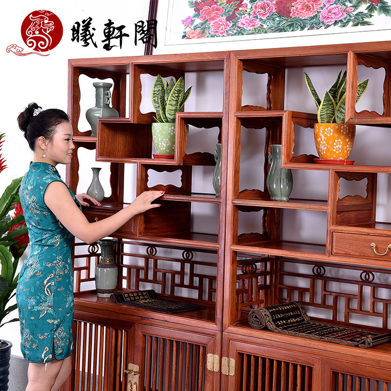 曦轩阁红木缅甸花梨中式仿古博古架 mdhl--bgj001
