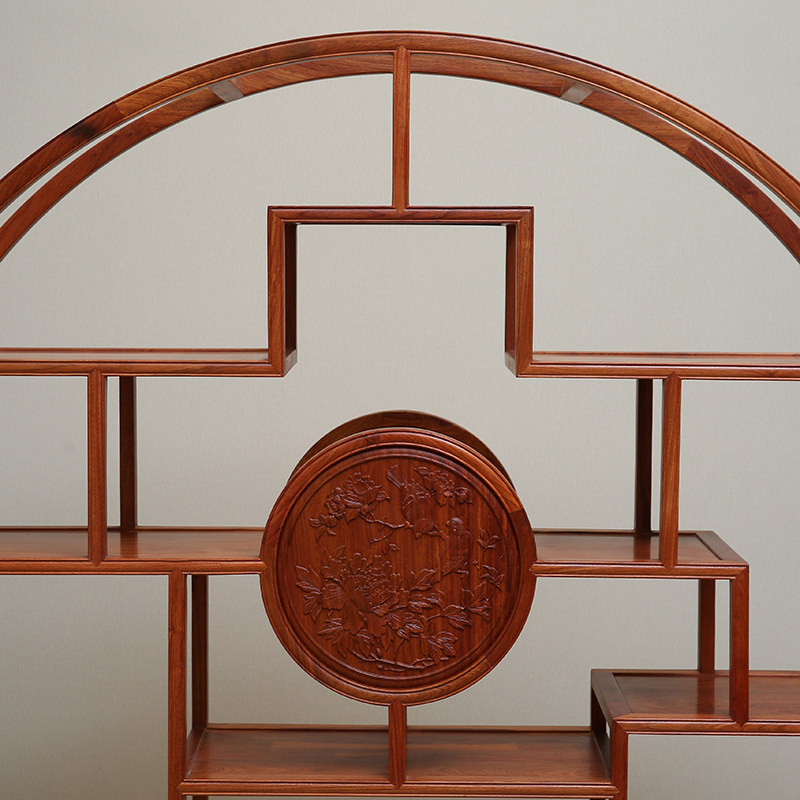 贡艺名居红木缅甸花梨木古典中圆博古架GY-HYY-73