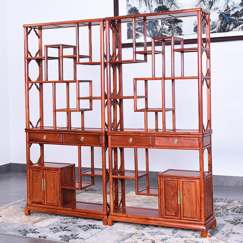 艺铭天下缅甸花梨木中式实古董架J-8010