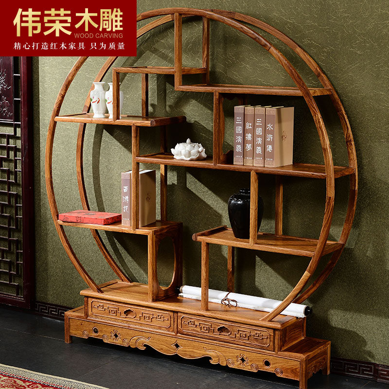 伟荣木雕中式红木紫檀木圆形博古架B06