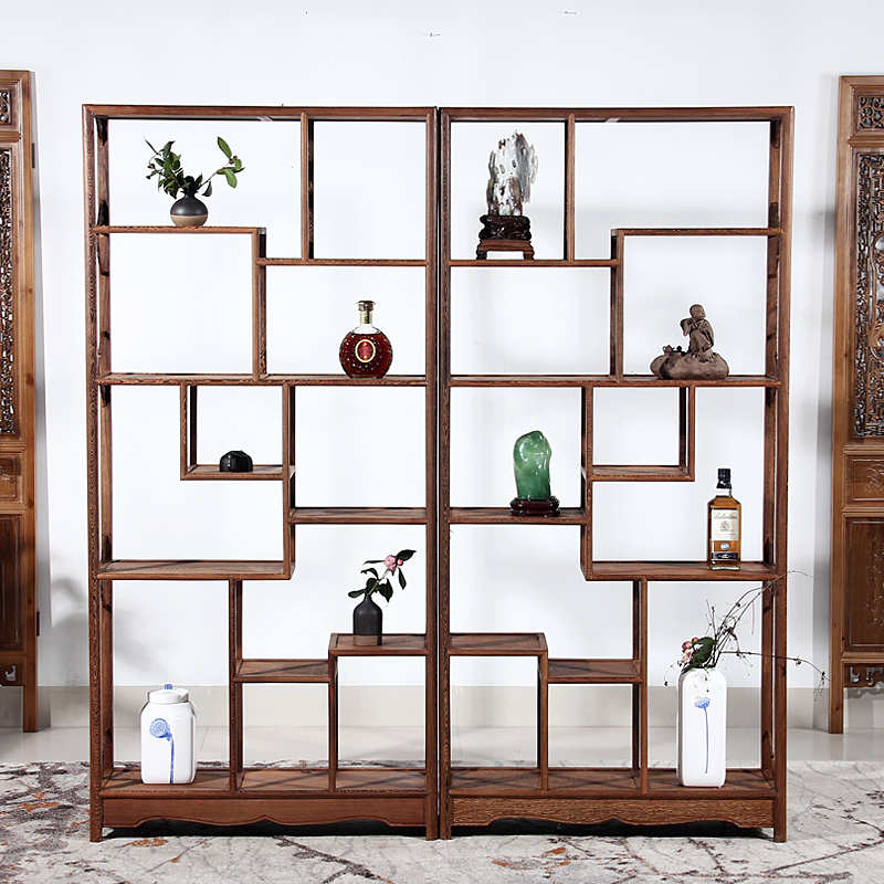 青龙韵简约中式仿古红木鸡翅木博古架J13