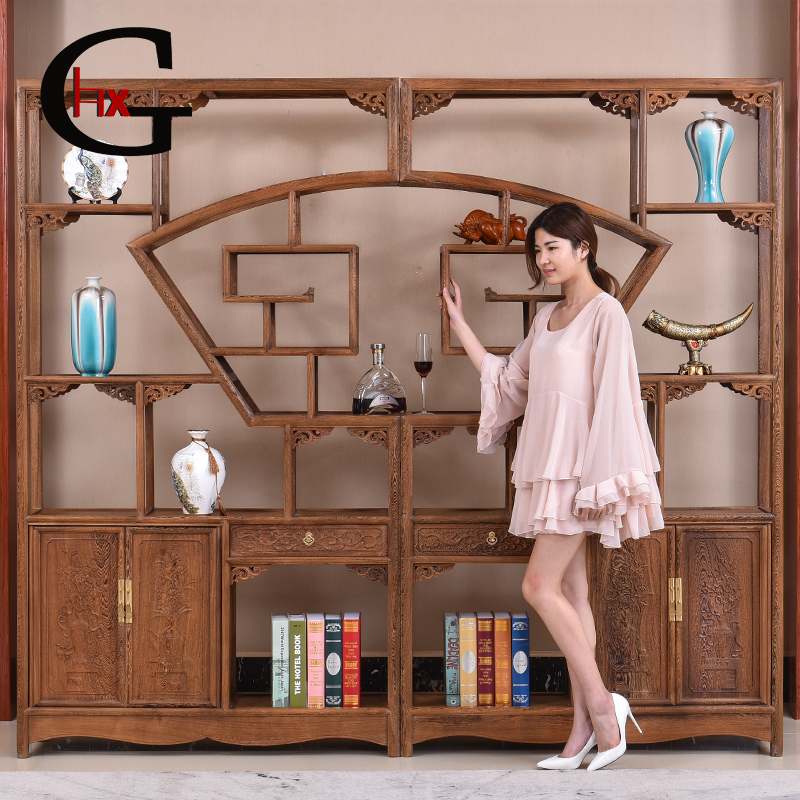 hxg明清红木古典扇形博古架 JCBGJ049