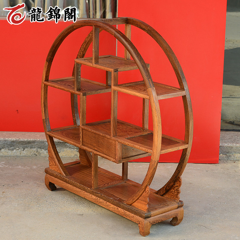 龙锦阁简约中式仿古红木鸡翅木小圆博古架 BGJ-001