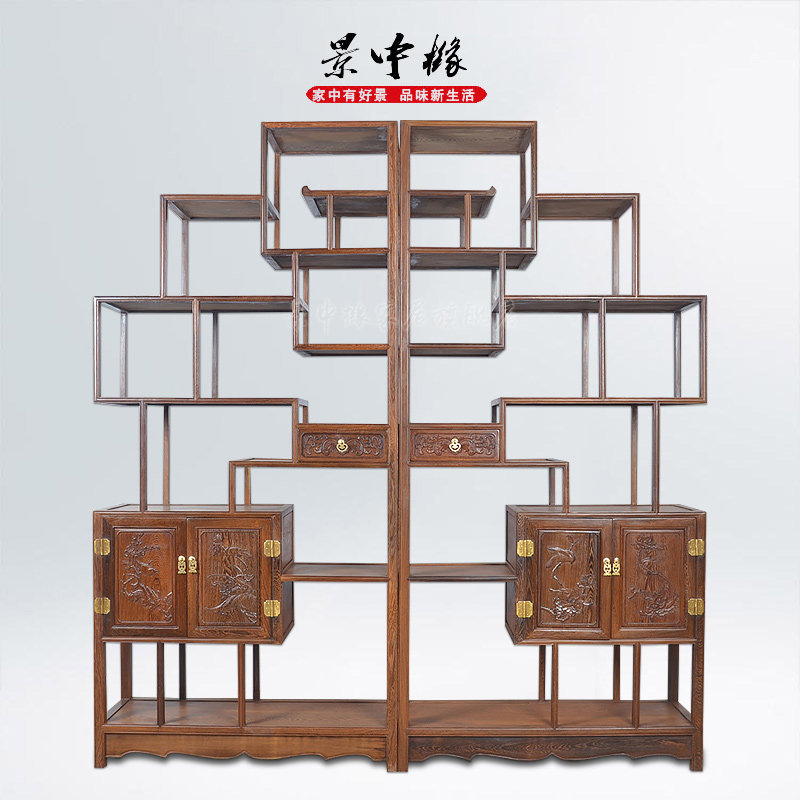 景中橼红木鸡翅木大号中式实木展示格ys