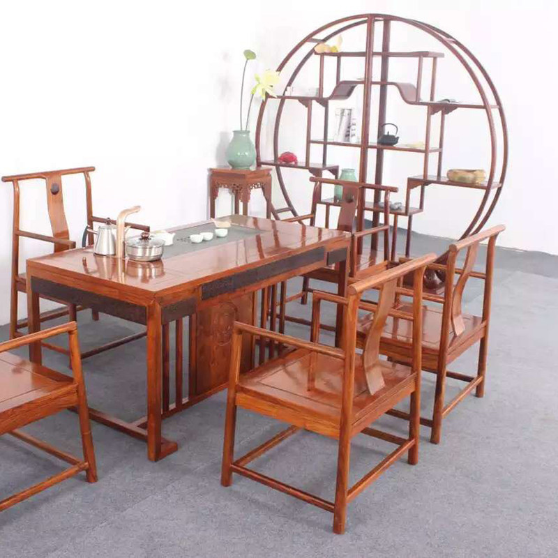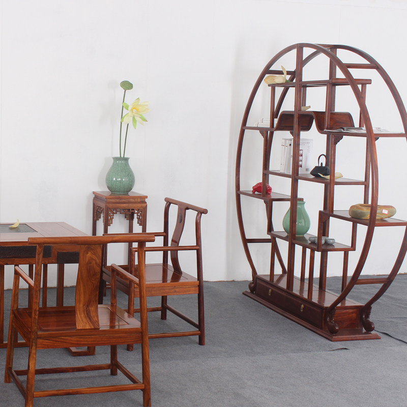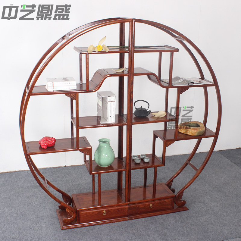 中艺鼎盛红木实木新中式刺猬圆形置物多宝格