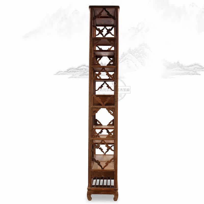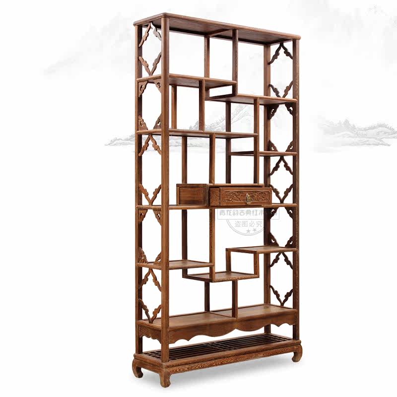 青龙韵鸡翅木中式仿古实木置物架 DWBGJ01