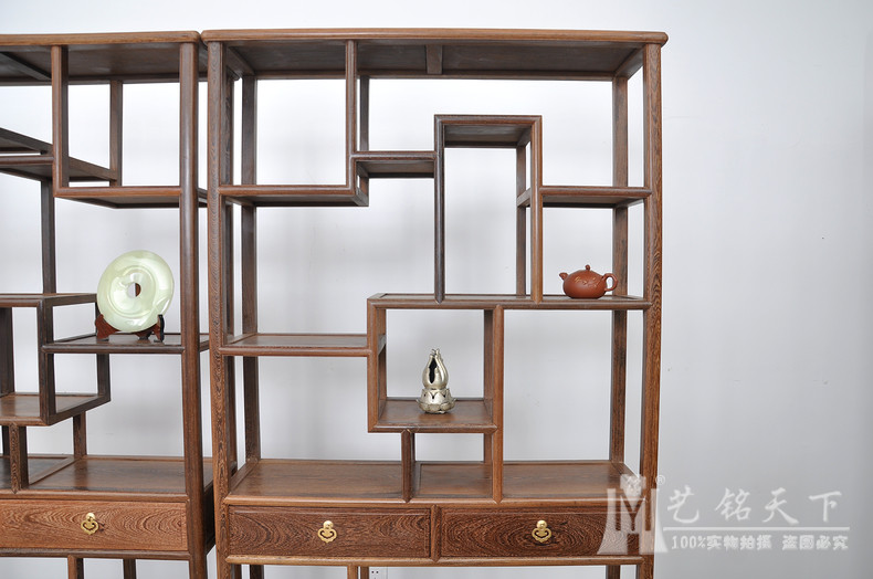 艺铭天下红木鸡翅木中式博古架1对J-9925