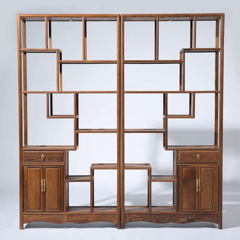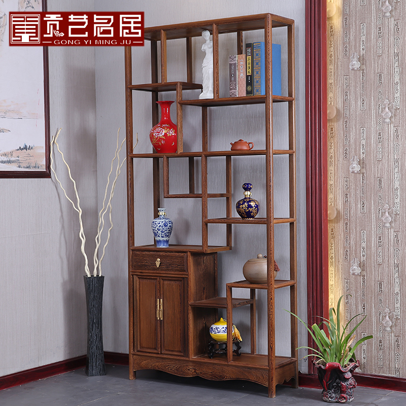 贡艺名居红木鸡翅木中式仿古博古架GY0039