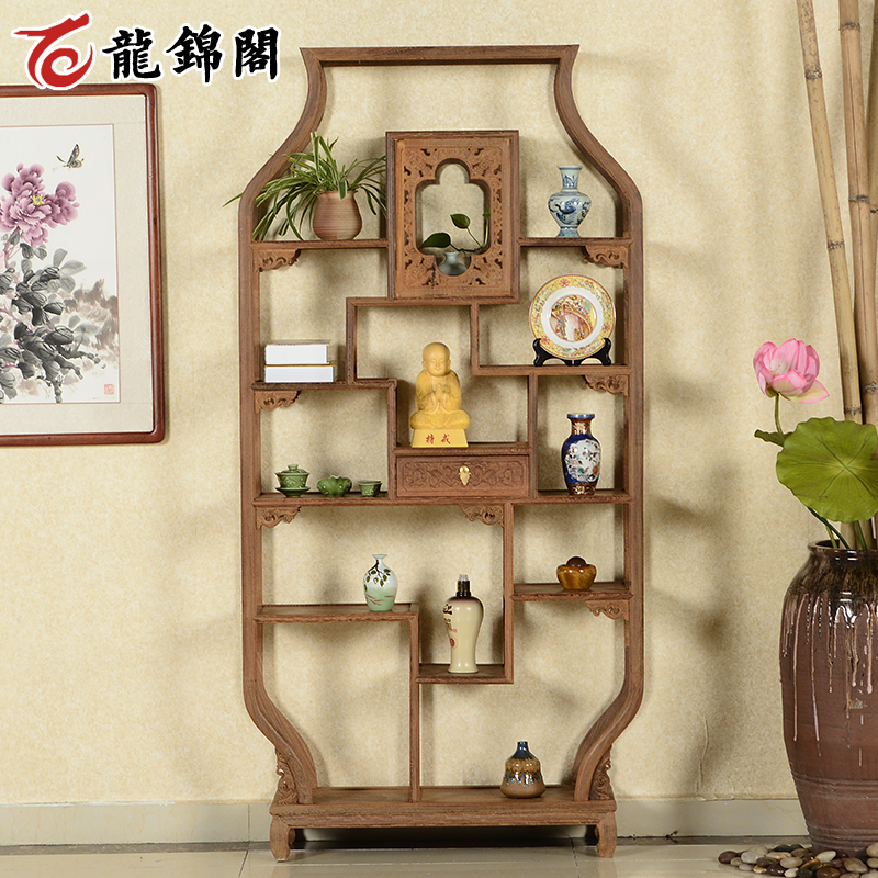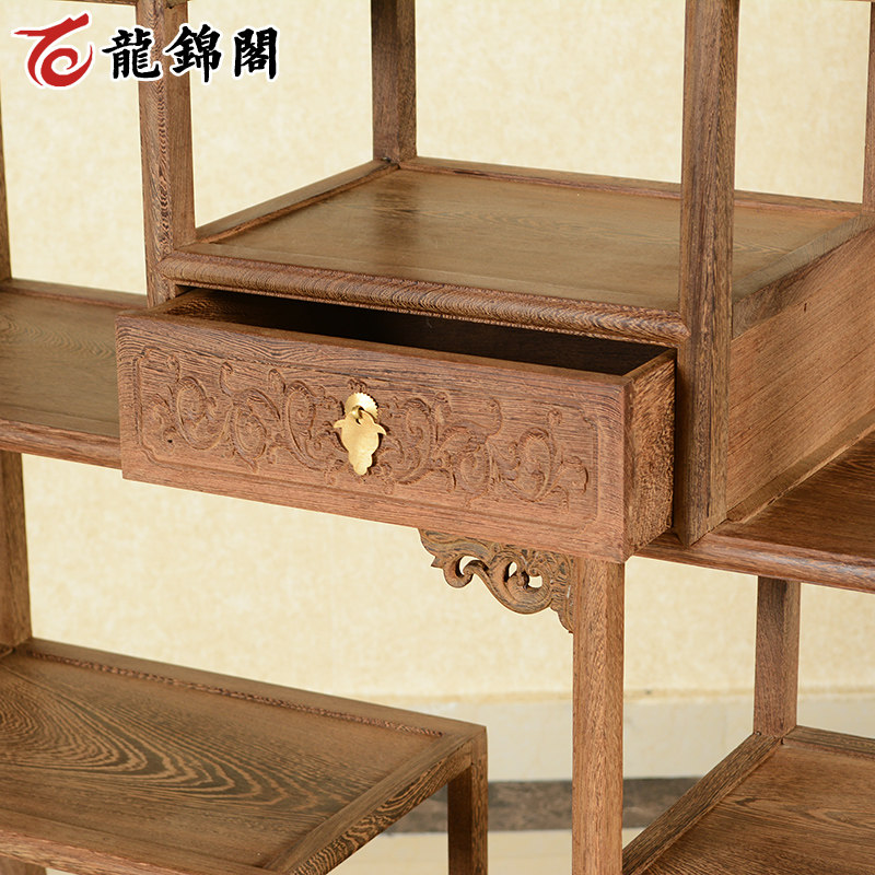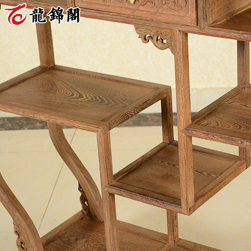 龙锦阁红木鸡翅木花瓶博古架BGJ-007